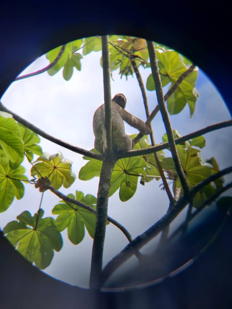 Nous décidons donc de revenir sur le Sendero Perezoso et on remarque un attroupement de personnes. Nous regardons en l’air et, enfin, nous voyons un paresseux. Nous assistons même à un combat entre deux de ces animaux dans les arbres. Un peu plus loin, nous tombons sur un autre paresseux, mission accomplie!