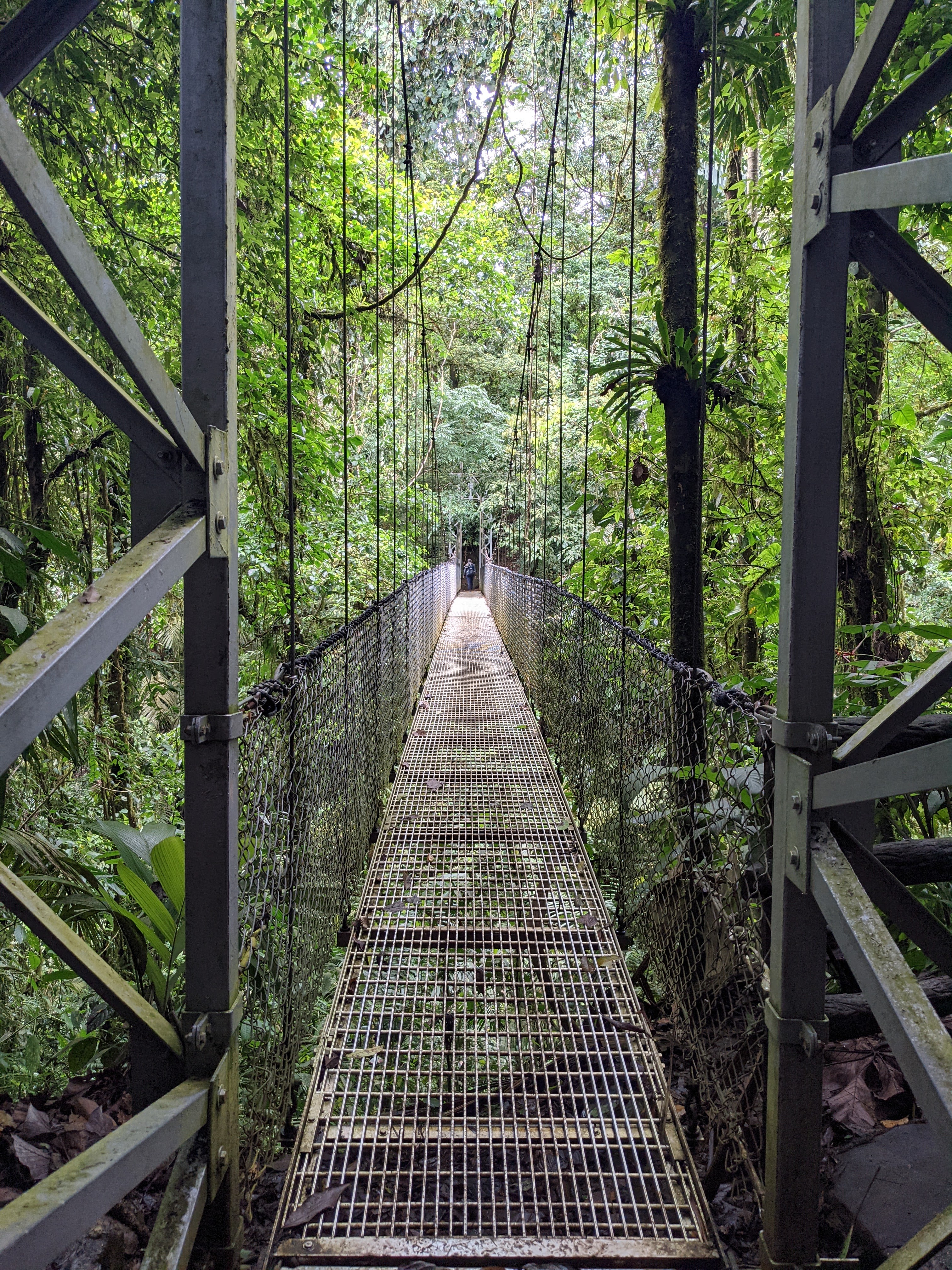 A notre arrivée vers 11 heures, nous visitons le parc Místico Arenal Hanging Bridges qui consiste en un parcours d’environ 3 heures dans la forêt ou se succèdent plusieurs ponts suspendus.