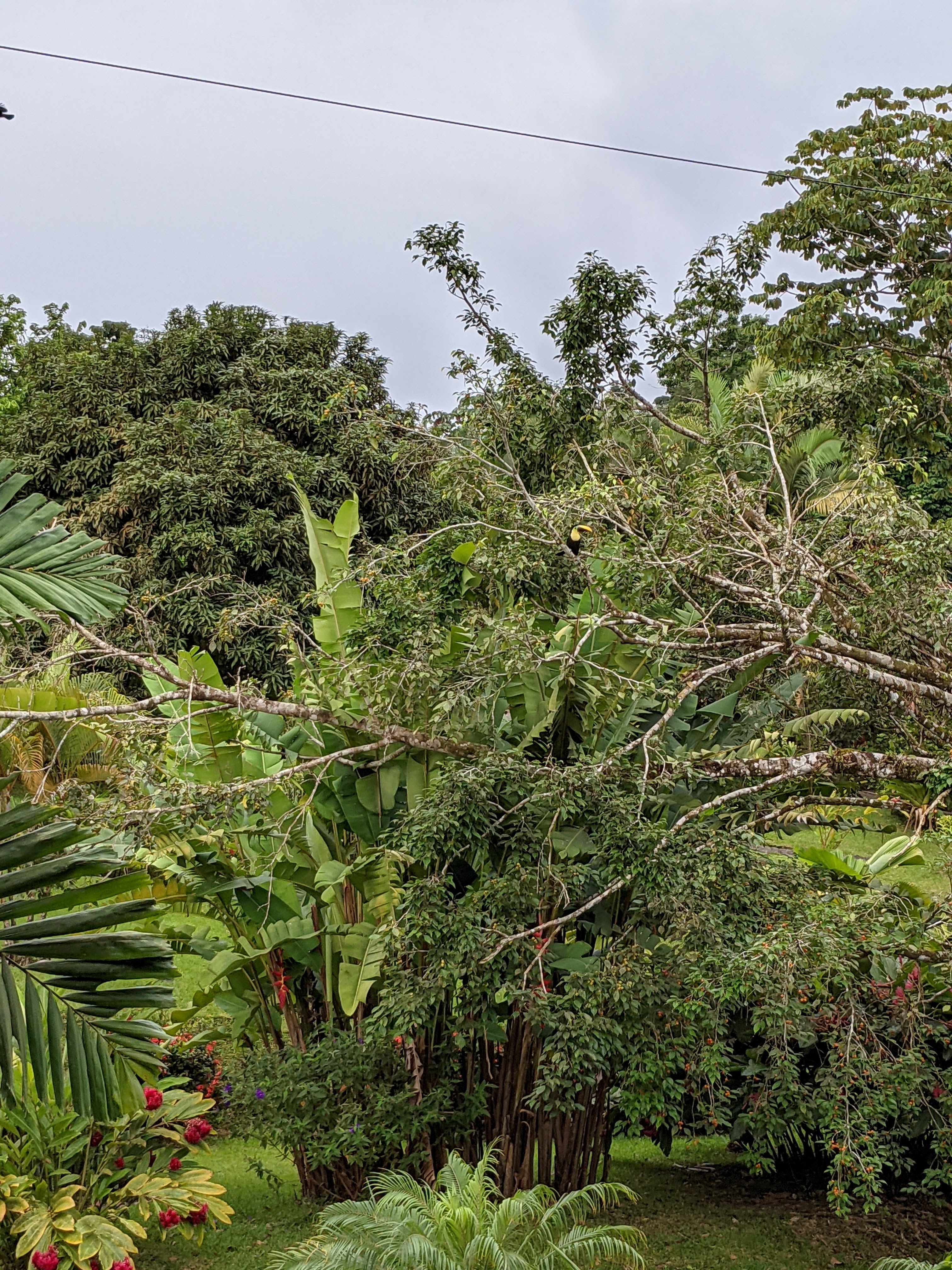 Pour notre deuxième réveil au Costa Rica, un toucan nous rend visite dans l’arbre en face notre balcon. Après le petit déjeuner, nous faisons un tour dans les jardins de l’hôtel ou nous observons plusieurs animaux, puis nous nous mettons en route direction le parc du volcan Arenal.