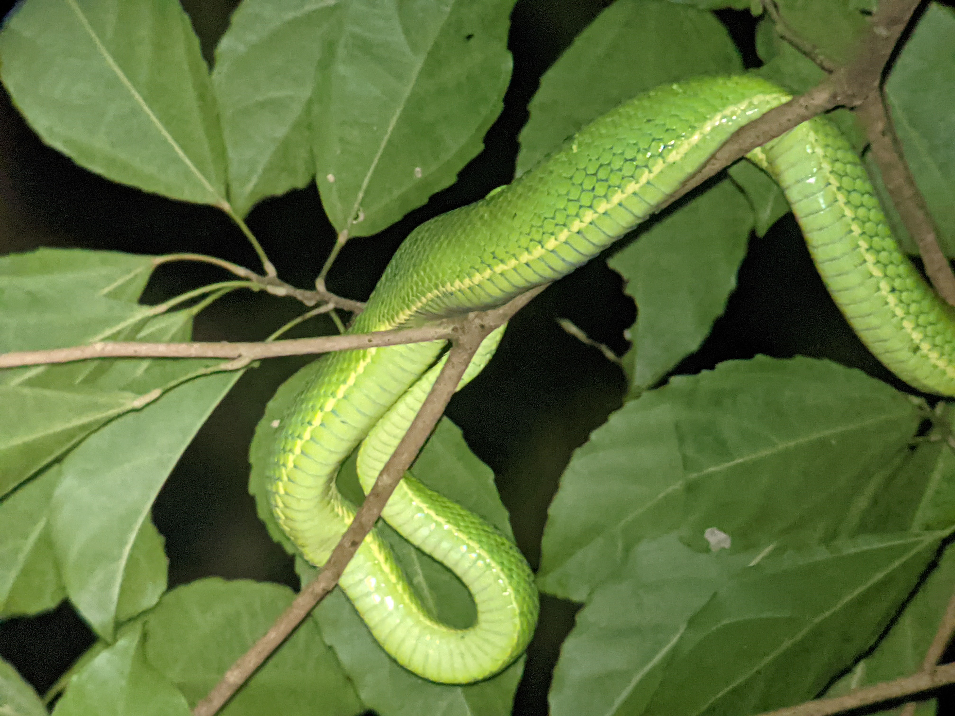 A 17 heures, nous avons rendez-vous dans la réserve de Curi-Cancha pour une visite de nuit. Le tour guidé a duré environ deux heures et nous avons pu observer différents animaux: une vipère, un toucanet endormi, des grenouilles, une tarentule ainsi qu’un kinkajou – drôle de coïncidence, puisque nous avions découvert l’existence de cet animal de la famille des ratons-laveurs seulement quelques semaines auparavant dans le film d’animation Netflix « Vivo ».