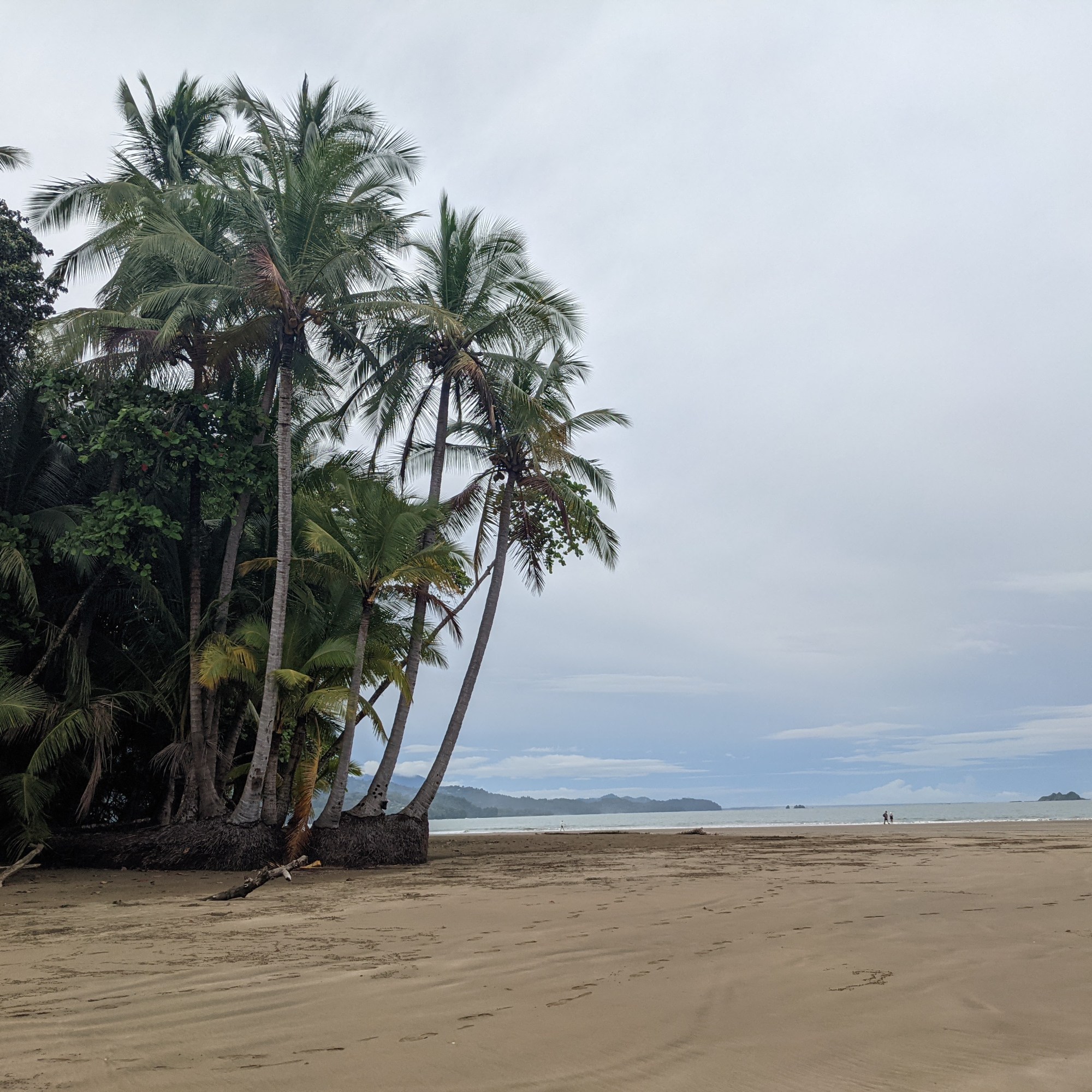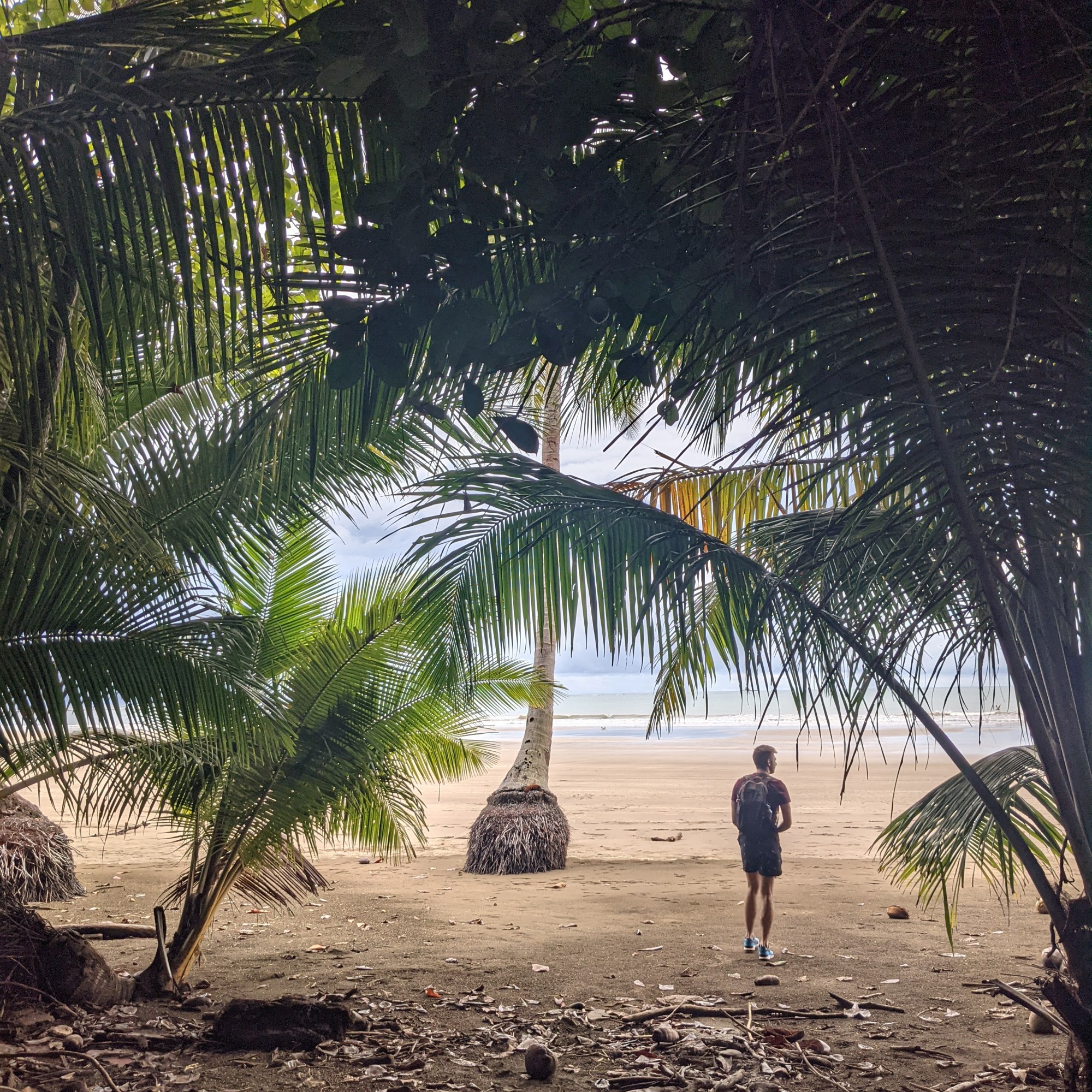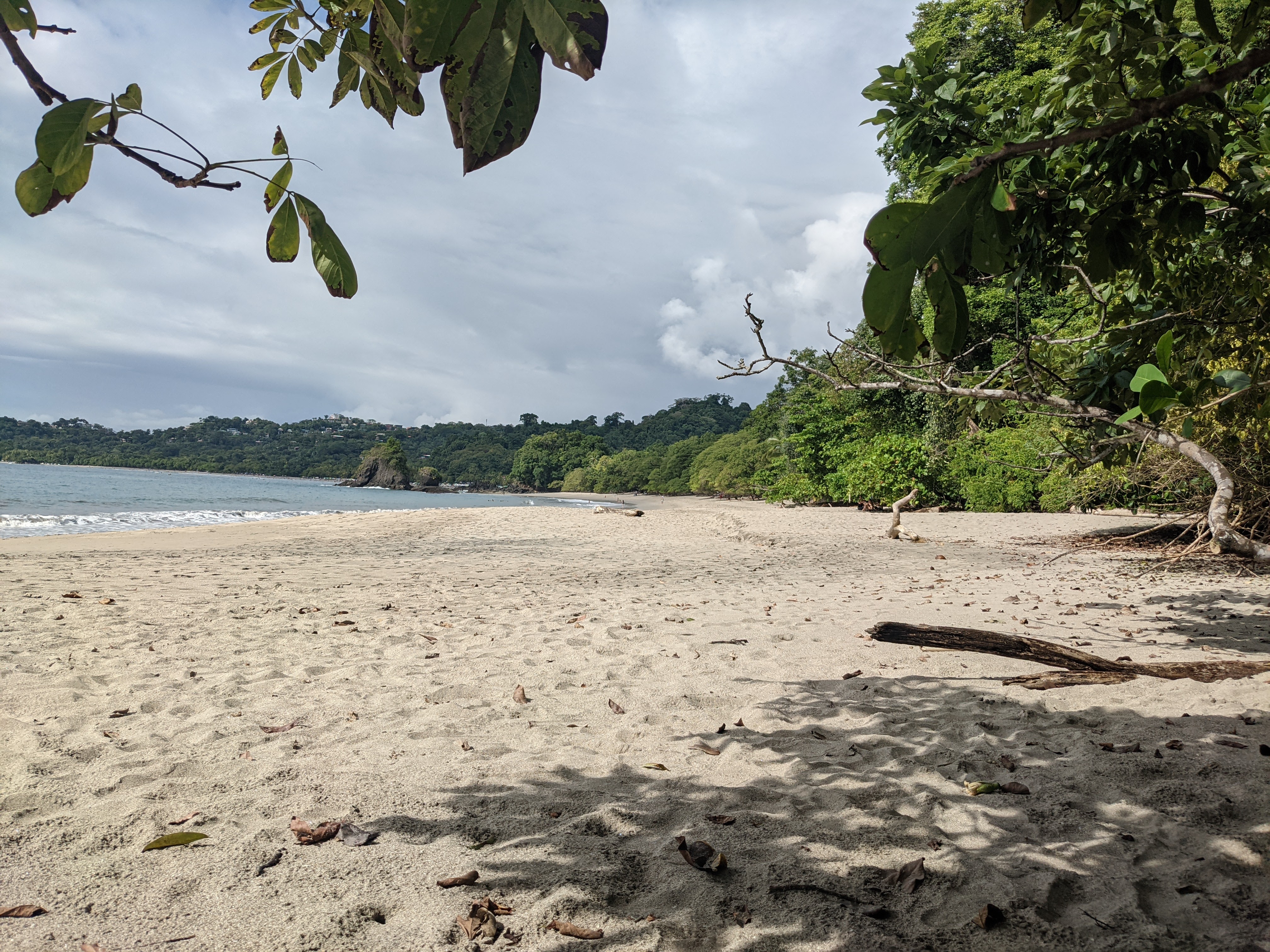 Après nos 10 kilomètres de marche en ayant parcouru le parc en long, en large et en travers, nous décidons de manger un morceau dans le parc (il est interdit de ramener de la nourriture qui peut rendre les singes agressifs), nous décidons de nous rendre à la plage. Nous nous rendons sur playa Espadilla Sur, relativement vide.