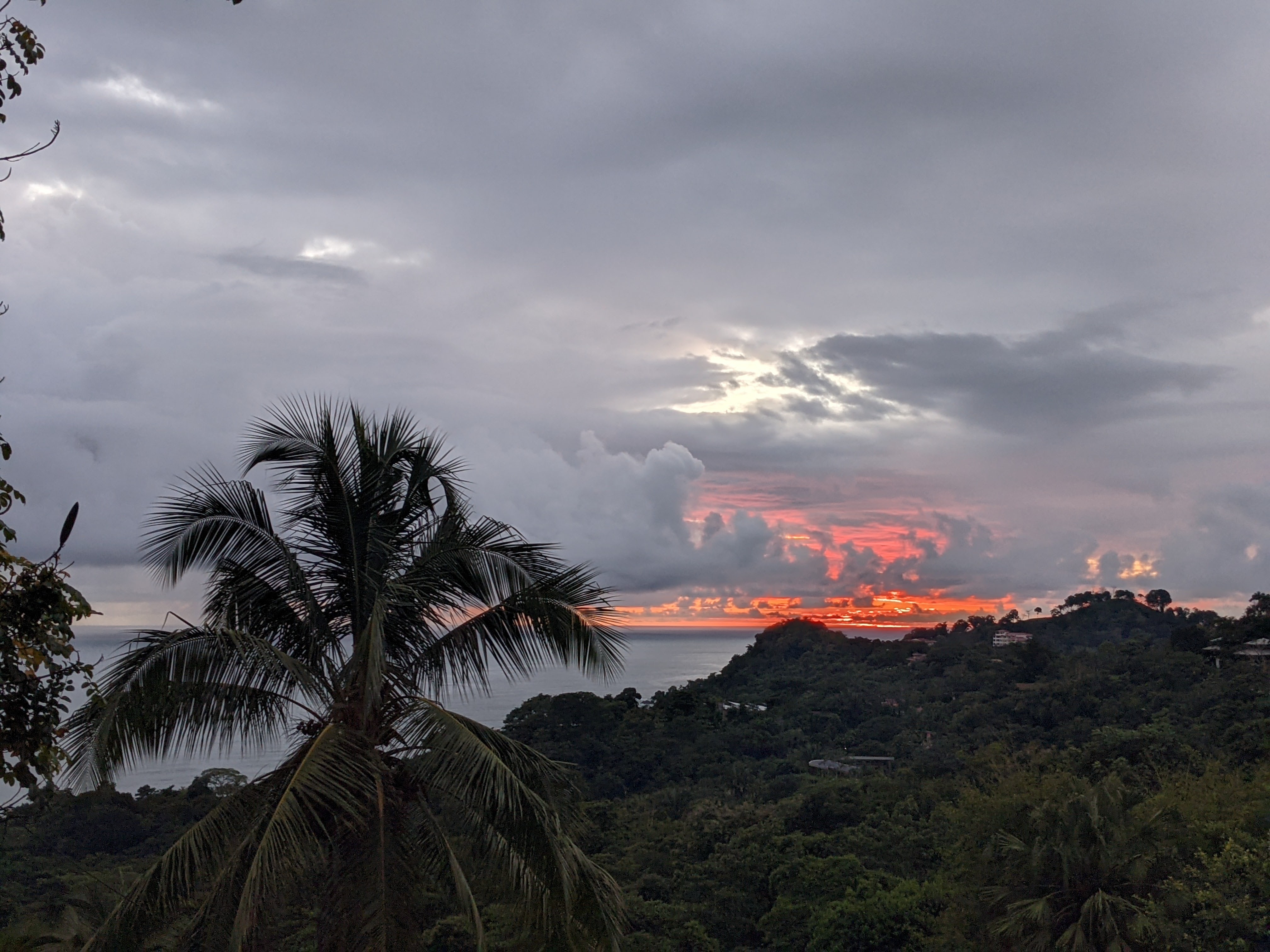 Nous arrivons à notre lodge aux alentours de 15 heures, le lieu est d’ailleurs tenu par des Français. Nous partons ensuite à la plage Dominicalito pour le coucher de soleil, puis nous nous rendons au restaurant La Parcela, où nous avons très bien mangé. Après une semaine de riz, haricot et du fameux « Casado », nous étions contents de nous retrouver en bord de mer pour manger du poisson.