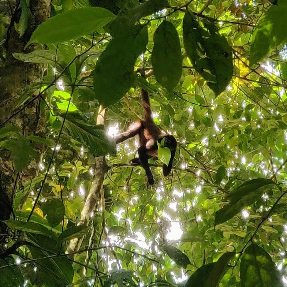 En rentrant à notre cabine, nous croisons encore un grand nombre de singes capucins qui s’amusent à sauter d’arbres en arbres au-dessus de nos têtes.
