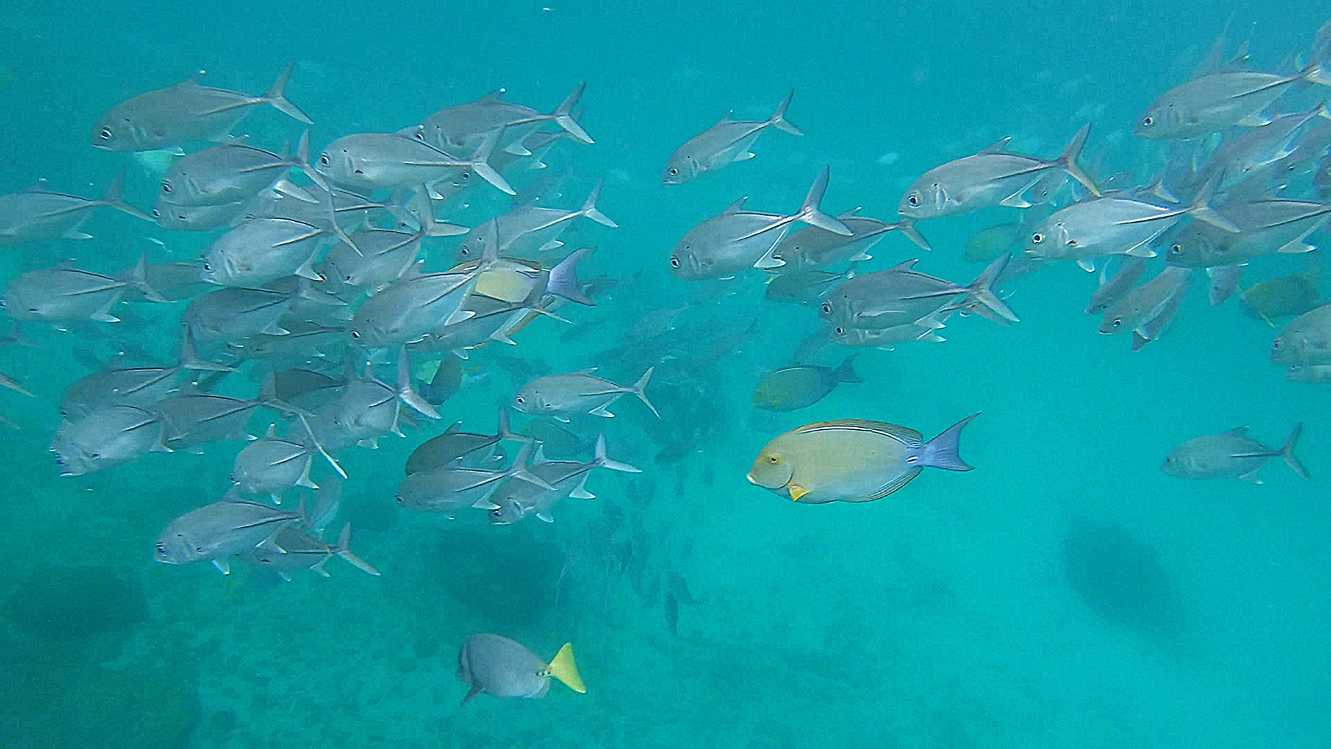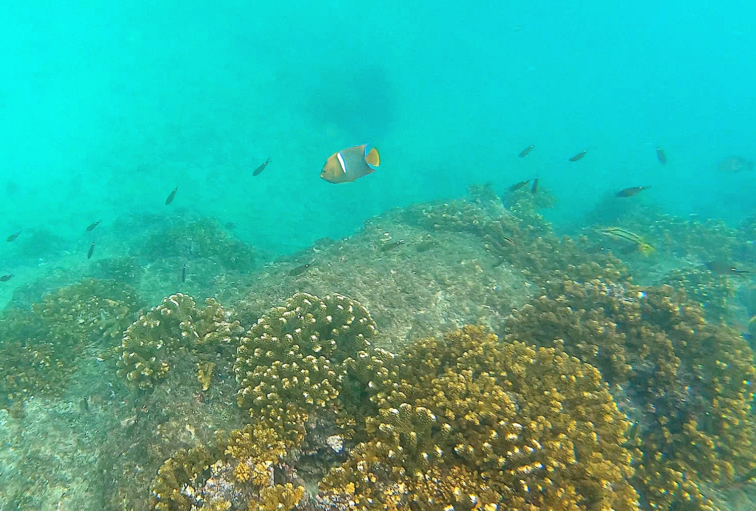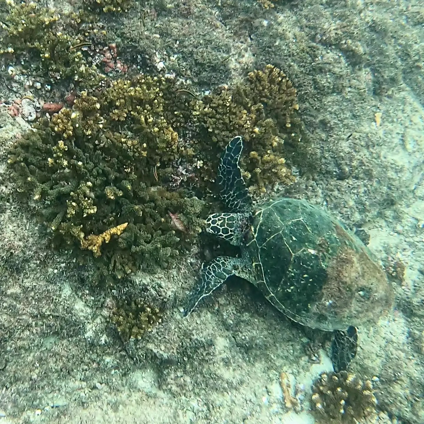 Nous nageons donc toute la matinée dans deux sites différents. Nous suivons le guide qui nous indique les lieux intéressants en termes de faune marine. Nous voyons un grand nombre de poissons différent, un serpent marin, des requins à pointes blanches et plusieurs tortues.