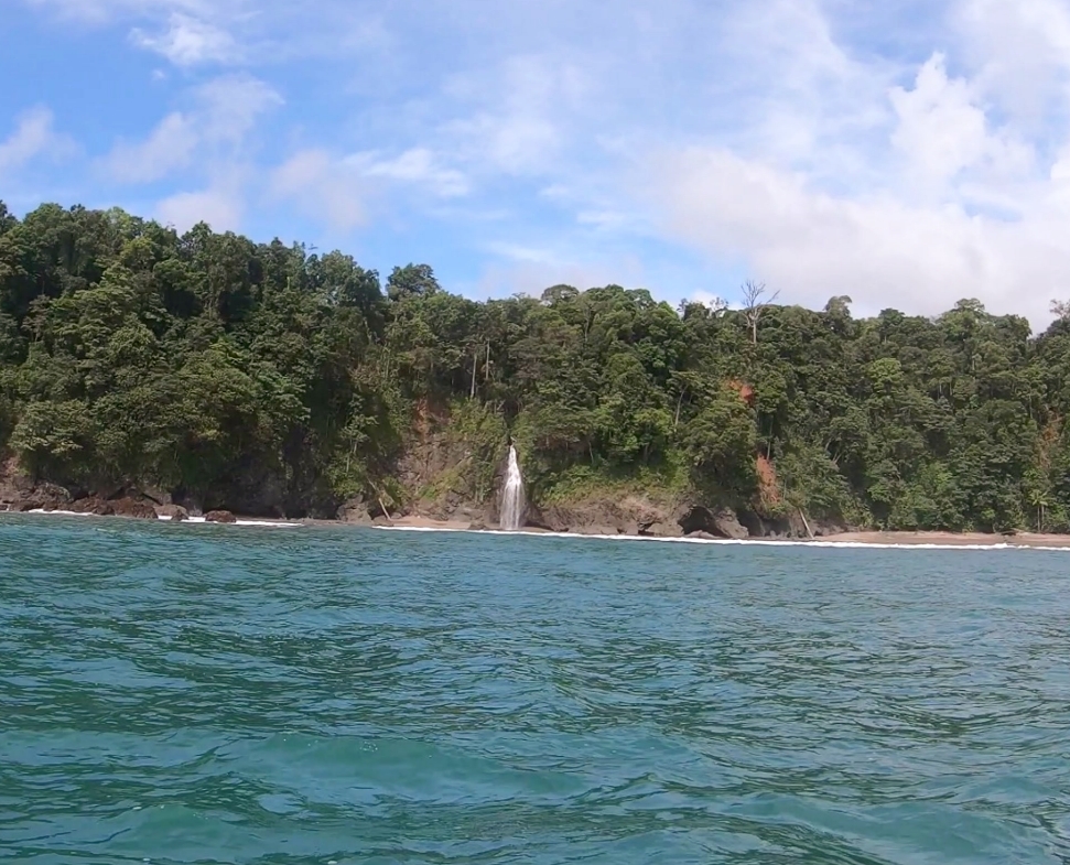 Après 8 kilomètres de marche, nous reprenons le bateau direction Bahia Drake. Nous nous arrêtons en route pour jeter un œil sur une cascade qui se jette dans la mer et nous arrivons au Rancho Corcovado aux alentours de 13 heures pour un déjeuner bien mérité.