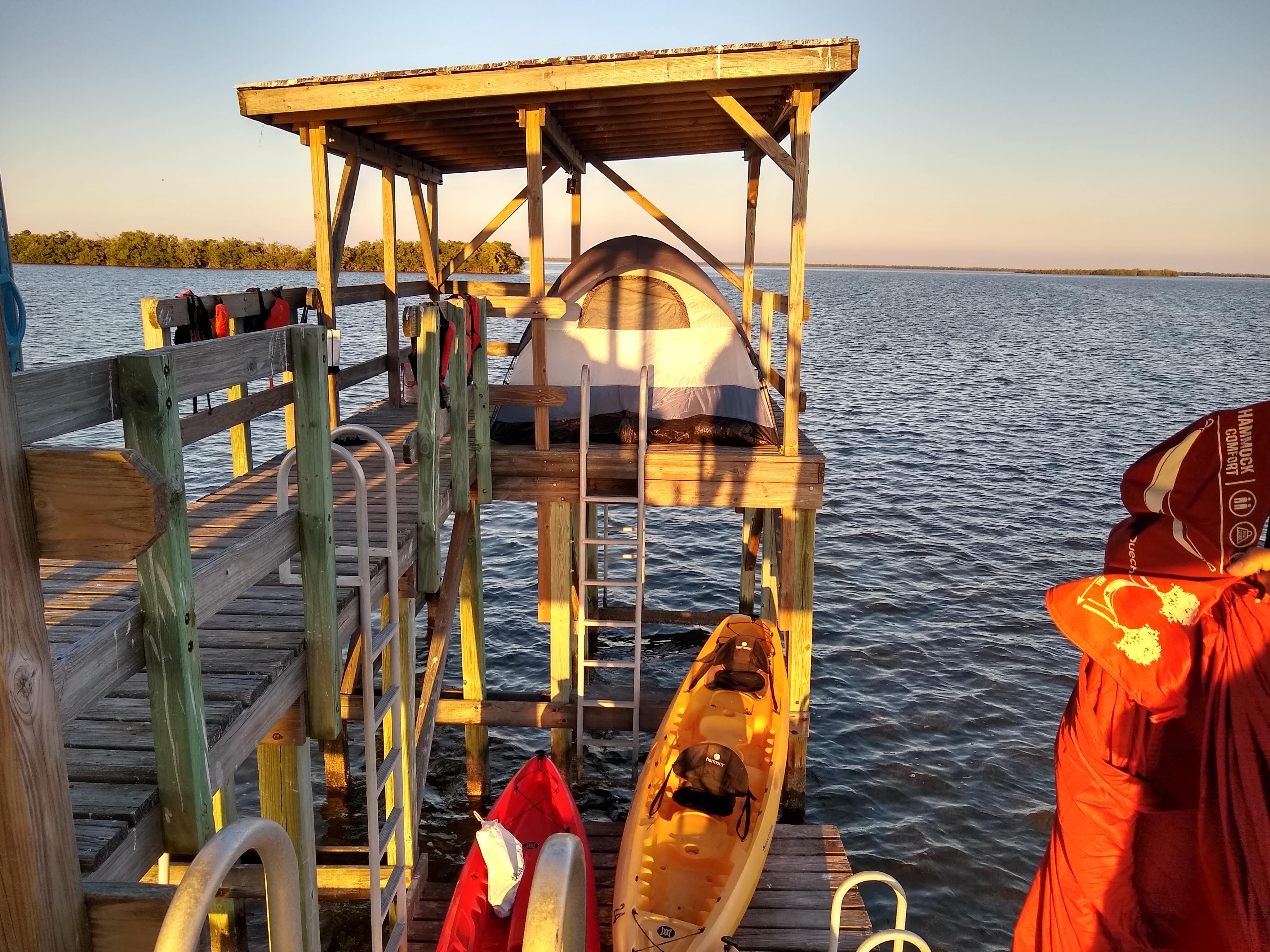 Egalement dans le secteur sud des Everglades, si vous avez au moins deux jours devant vous, une idée originale de découvrir cet environnement est de passer la nuit sur un Tiki en bois au milieu de nulle part.