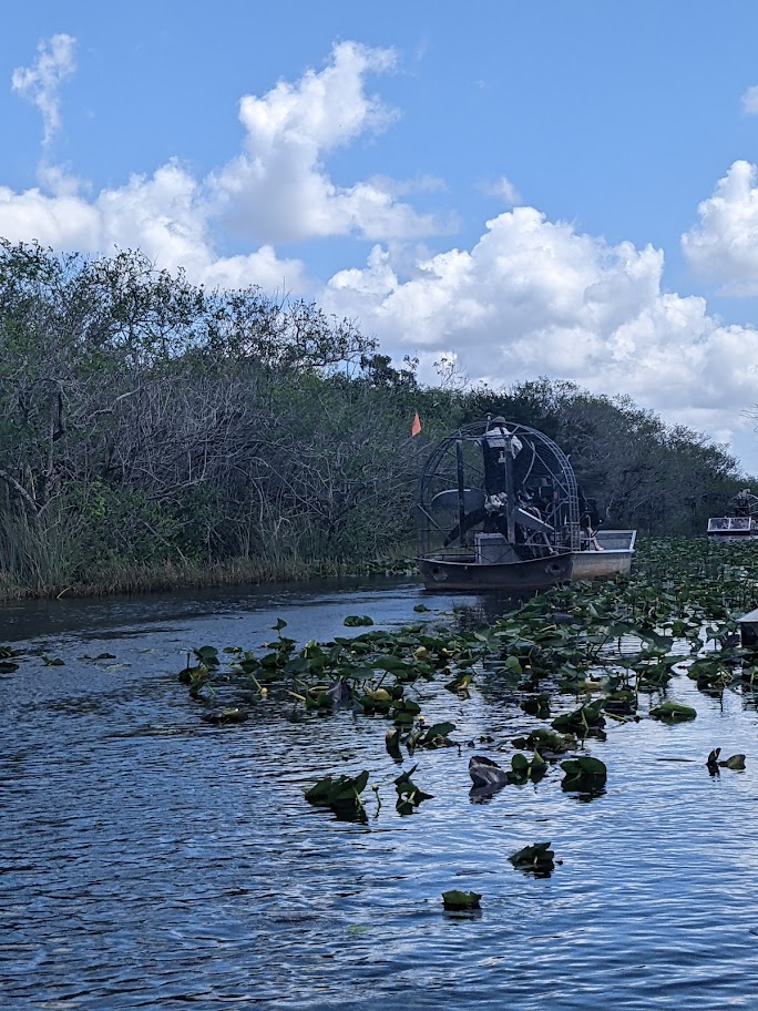Quand on parle des Everglades, il est difficile de ne pas associer le fameux Airboat. Ce bateau propulsé par une Hélice hors de l’eau sur lequel on a littéralement l’impression de glisser quand on avance.