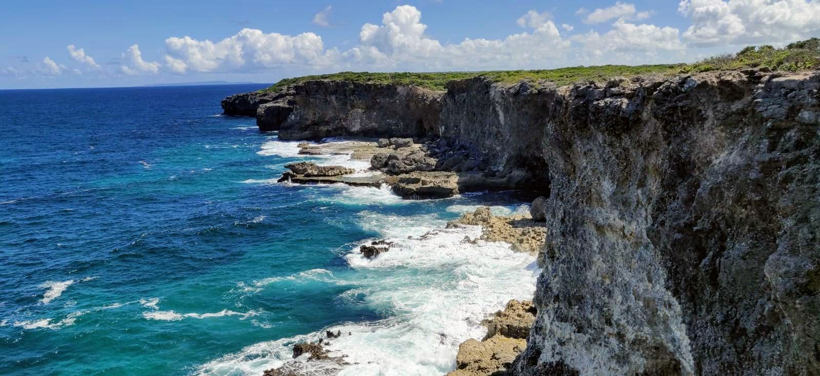 Pour la première journée en Guadeloupe nous nous dirigeons vers Saint-François et visitons Pointe des Châteaux. Nous nous y baladons toute la matinée. Les paysages sont magnifiques avec l’eau couleur bleu intense et les rochers contre lesquels viennent s’écraser les vagues.