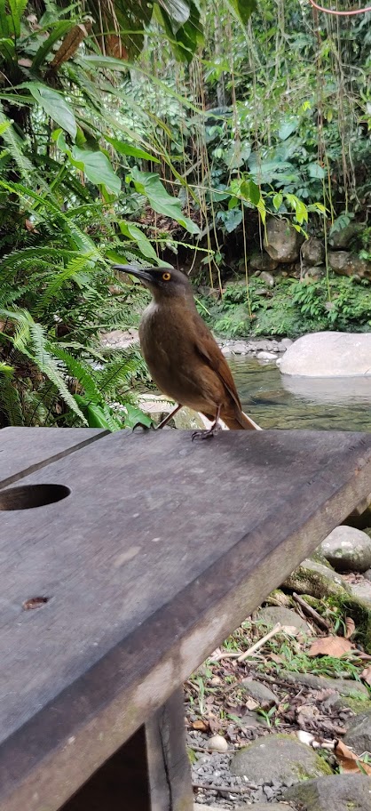 La route grimpe dans la montagne pour se rendre aux chutes et la route est étroite. Au croisement avec un bus, notre petite Fiat Picanto a eu du mal à redémarrer. Nous nous sommes donc arrêtés sur le chemin de la deuxième chute du Carbet pour faire une petite marche au niveau du grand étang de le temps de refroidir la voiture.